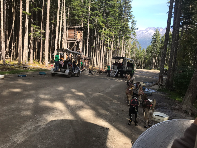 During the summer, they use sleds with wheels so the dogs can practice. I had read that these dogs love to run and I saw this with my own eyes. They work together and seemed so happy and excited. Hope this little video will play for you.